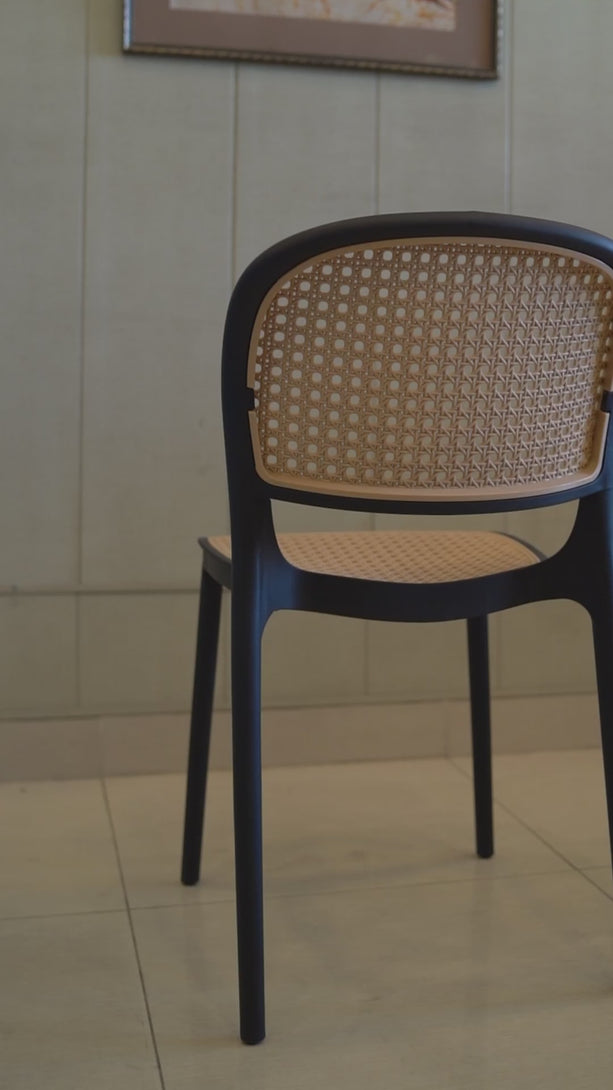 The fusion plus chairs showcase a full plastic build for easy maintenance and robust outdoor use. Available in classic black finish, each chair features a rattan-patterned backrest and seat, durability with a touch of natural charm. These stylish chairs are a smart pick for any space.